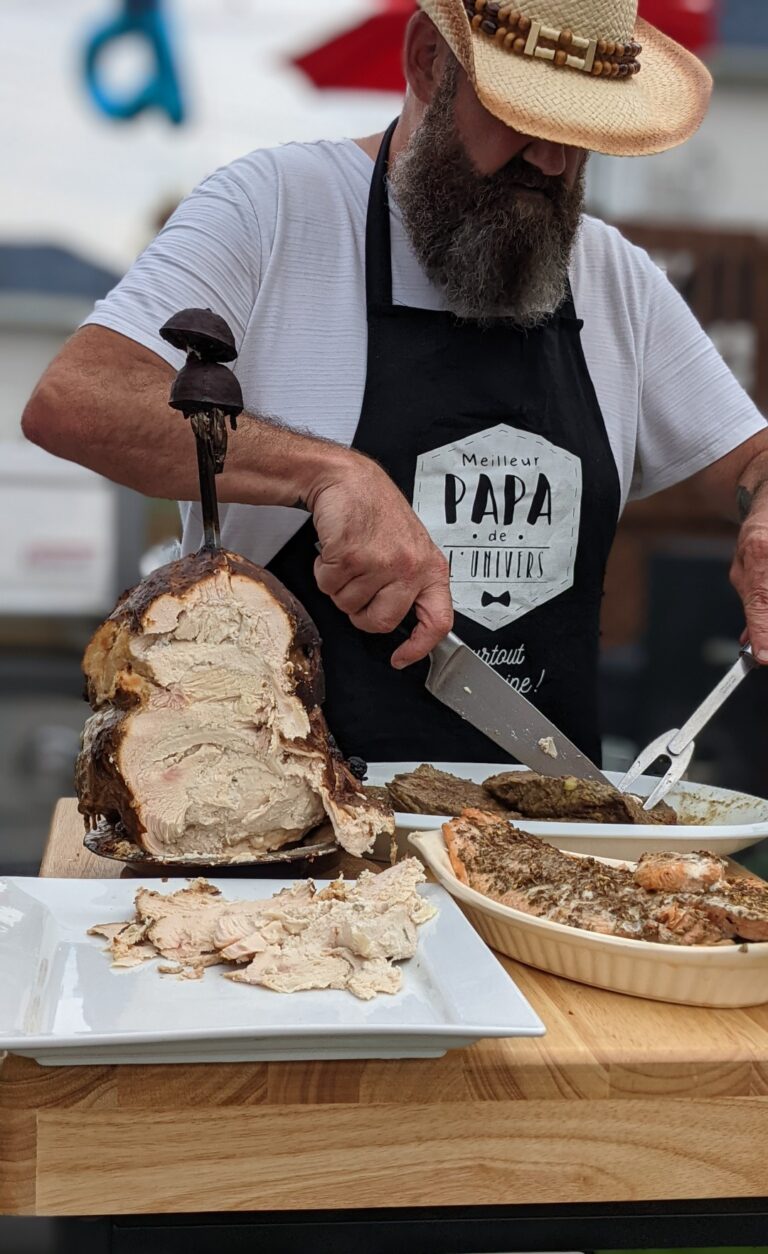 Je feuillète les pages, une après l’autre, je lis ce livre comme un roman. Mais un livre n’est pas comme une rencontre divine. Un jour où je faisais quelques recherches sur des techniques qu’il expliquait dans son livre, je reçois une notification Facebook, une notification divine; la rencontre divine allait se produire; il offre des cours de groupe d’une journée sur les différents fumoirs, les techniques (saumure, allumage au charbon ou aux briquettes, etc.) . Voir si j’allais laisser passer cette chance. C’est à partir de là où j’ai compris que je ne pourrais m’en passer. Être avec plus d’une centaine de passionnés comme moi, écouter un gars tout aussi passionné c’était le top.